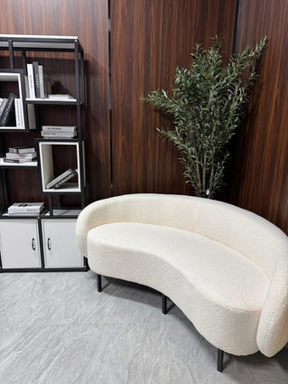 Уютная интерьерная зона с мягким диваном и стильным шкафом создает атмосферу жилого пространства и «живой» жизни. Эта зона добавляет естественности и позволяет снять кадры без ощущения постановки.